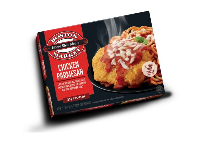Boston Market‘s Chicken Parmesan contains real mozzarella. “I normally make these from scratch, but once in a while, when I get a great sale price, these are an easy peasy meal that takes hardly no time at all to make in the microwave. They are quite tasty, and you get the chicken parmesan with spaghetti and sauce,” one fan said.