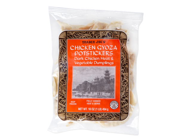 Trader Joe’s Chicken Gyoza Potstickers are an easy snack beloved for their perfect blend of a crispy bottom and a soft, chewy wrapper with a juicy dark meat filling. According to Chef Corrie, “These are larger dumplings, packed with quality ingredients.” He explains, “The wrapper does a good job of holding everything together perfectly and while the dumplings are simple, they’re a protein-filled pick that are consistently reliable.”