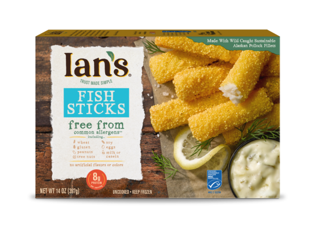 Ian’s fish sticks are made with sustainable, wild-caught Alaskan Pollock that’s tender inside and crunchy on the outside and with limited ingredients. “They use simple ingredients and the coating is lighter than most,” says Buchanan. “The fish stays tender,” she adds.