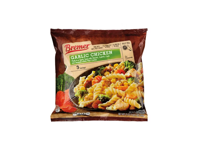The Bremer Garlic Chicken Skillet from Aldi is wonderful, shoppers rave. “The protein-packed skillet meal features tender pasta, broccoli, corn, carrots, and white meat chicken in a flavorful garlic sauce. Just heat yours up on the stove and grab a warm roll for the perfect end to your day!” the chain says. “Opted for an easy Bremer garlic chicken skillet-delicious. Also comes with an entire head of broccoli,” one fan shared.