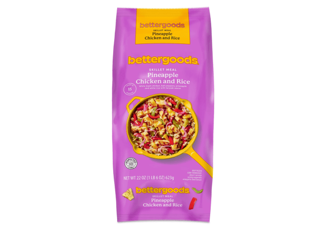 bettergoods Pineapple Chicken & Rice Skillet Meal is made with white meat chicken, pineapple, and bell peppers. “Absolutely delicious!” one fan raved. “Big chunks of grilled tender chicken and pineapple. Plenty of peppers and onions. Fabulous sauce.”