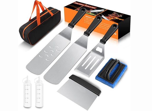 Be prepared for any outdoor cooking adventure with this smart griddle tool kit from Blackstone. For $21.99, you’ll get an eight-piece set including two spatulas, a flipper, a scraper, a chopper, two squeeze bottles, and a storage bag.