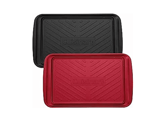 Grill prep trays are sometimes an afterthought in grilling but they can make a huge difference in easy cleanup and keeping everything sanitary. This two-pack of Cuisinart trays comes in red for raw meat and black for serving. The nesting trays are dishwasher safe making for super simple cleanup.