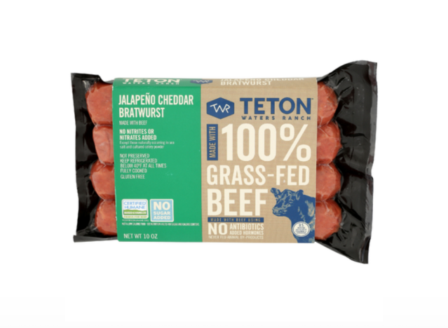 Teton Waters Ranch Jalapeno Cheddar Grass Fed Bratwurst is made with 100% grass-fed, grass-finished beef, with cheesy cheddar and spicy jalapeño in every bite. “These are insanely good like way too good! I cooked in beef tallow on my cast iron so juicy and cheese I need 100 more,” one Sprouts shopper said.