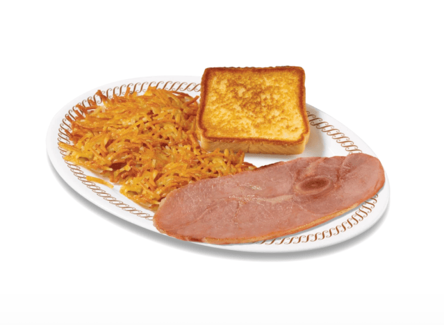Waffle House, one of the largest chains in the country, with almost 2,000 locations, offers a Country Ham Dinner plate that features a five-ounce cut of ham steak, alongside Waffle House’s famous hash browns and a slice of grilled Texas toast. It is served 24 hours a day, 365 days per year.