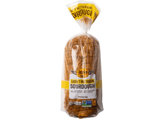 “Izzio Lucky 7 Multigrain Sourdough combines everything you love about sourdough with a touch of sweetness and heartiness from flax, sesame, sunflower, and pumpkin seeds,” says Jessi Holden, MS, RDN Culinary Family Dietitian and owner of The Kitchen Invitation. This lower-calorie, lower-carb option is great for folks who want a sourdough bread that comes on the lighter side. You’ll still get 2 grams of fiber and 2 grams of protein per slice which is impressive considering the low calorie content of this loaf.