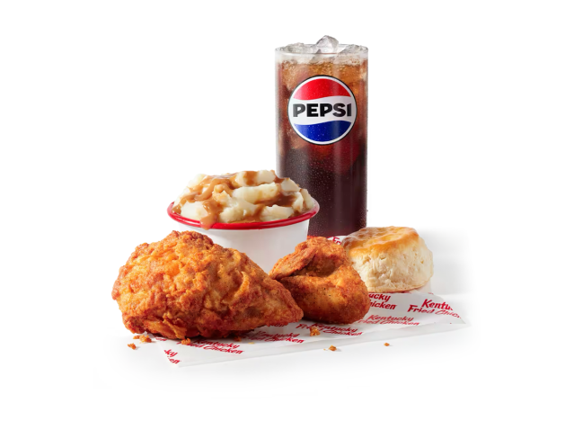 The Taste of KFC deal includes 4 pieces of fried chicken (2drumstick & 2 thigh) with a side of mashed potatoes, gravy, and a buttery biscuit. “I usually get the Taste of KFC deal. You can adjust it to the size of meal you want and the value is unbeatable, and nothing is better there than their chicken anyway,” one diner said.