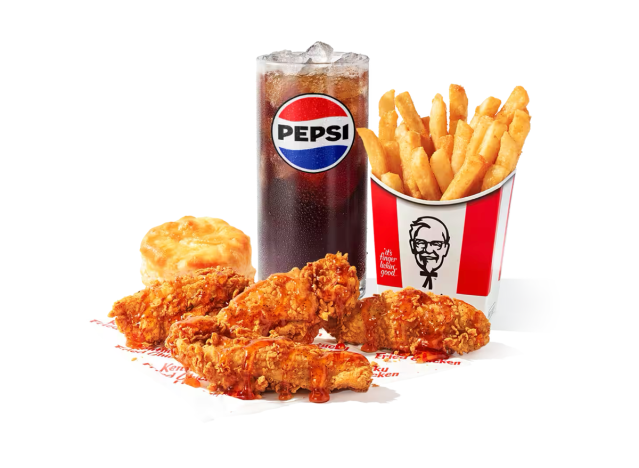 The Chicken Tenders at KFC are crispy and delicious. “Extra crispy chicken breast, Nashville Hot tenders and a biscuit. Ranch for dipping sauce with the tenders,” one fan shared.