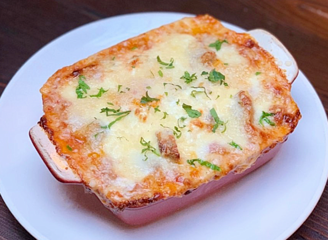 As the executive chef of Angelena’s Ristorante Italiano in Pensacola, James Briscione knows a thing or two about good pasta. There, he serves his “Greenwich St. Lasagna,” made with an eight-hour bolognese, mozzarella, Parmesan, and herbed ricotta. It makes sense, then, that his favorite lasagna in the country comes from a restaurant located on Greenwich Avenue. Don Angie, in New York City, serves what Briscione describes as a “unique take on the classic lasagna,” with “crunchy, crispy cheese-baked edges” and a “rich and satisfying bolognese” that gets rolled into pinwheels with layers of fresh pasta, creamy béchamel, mozzarella, and Parmesan. “Their lasagna is the inspiration for the crowd-favorite version of the dish we serve at Angelena’s.”