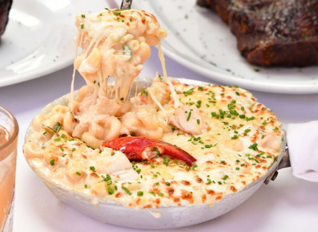 Ruth’s Chris offers a sizzling surf-and-turf option, allowing you to add a buttery lobster tail to any steak for $22.They also have lobster mac and cheese, which is a popular side.