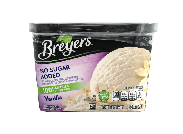 Breyers No Sugar Added Vanilla Ice Cream Frozen Dessert contains 100 calories per serving and has a nice consistency, fans say. “I’ve been told to stop eating sugar as I’m on the verge of diabetes so I tried this ice cream with no sugar added after it being recommended to me,” one Walmart shopper said. “I must say it is surprisingly very delicious. No aftertaste super creamy and it is a real treat.”