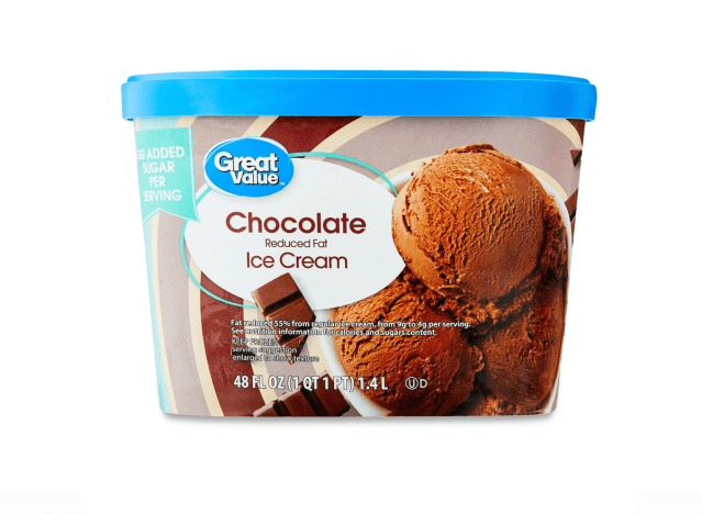 Great Value Reduced Fat Chocolate Ice Cream contains 120 calories per serving, and no sugar at all. “I don’t eat sugar and occasionally like to have a little ice cream with my family,” one shopper said, adding that no one could tell it was a zero-sugar ice cream.