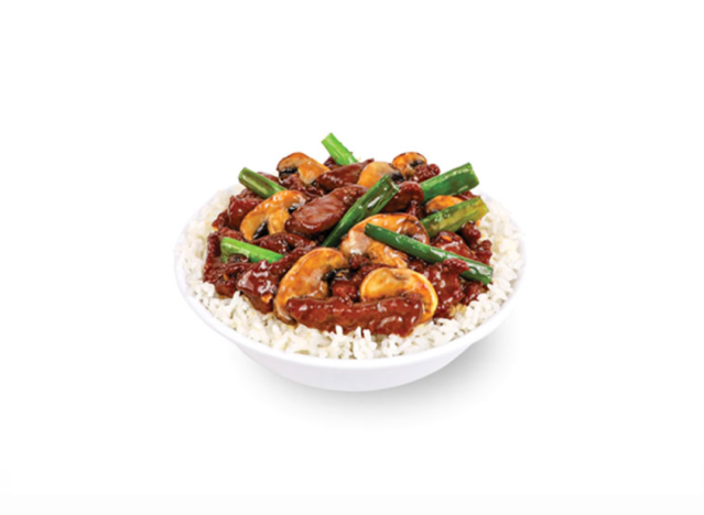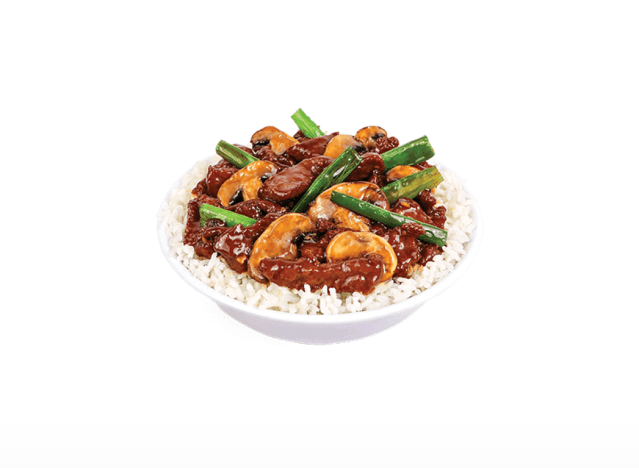 Mongolian beef has earned a devoted following for good reason. Its tender beef, with slightly crispy edges, is coated in a savory-sweet soy sauce and accented with aromatic garlic and ginger, making every bite irresistible. Popular in American-Chinese cuisine, it’s typically cooked quickly over high heat in a wok, where the sauce caramelizes, delivering a fast, flavorful meal. To find the best spots, Eat This, Not That! asked Therese Buchanan, home chef, food blogger & recipe developer at Tessie’s Table to share the top four chains.