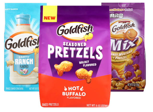 There are three new options from Goldfish: Zesty Ranch, Hot Buffalo, and Honey Mustard pretzels. These will hit stores in January.
