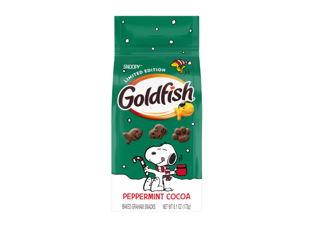 Goldfish is bringing the holiday cheer this year with new SNOOPY Peppermint Cocoa Grahams Goldfish and PEANUTS are teaming up for the first time ever to introduce Limited-Edition Goldfish SNOOPY™ Peppermint Cocoa Grahams, blending cool peppermint with rich cocoa. Get them for a limited time, starting this month for $3.69.