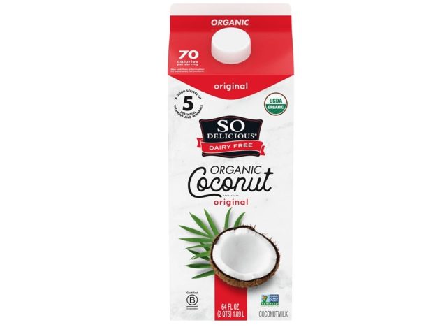 Coconut products have developed a health halo in recent years—but that doesn’t mean everything coconut-based is good for you. The organic coconut milk from So Delicious contains 20% of your daily saturated fat in a single cup, not to mention 7 grams of added sugar. It also has gums and fillers you may prefer to avoid.