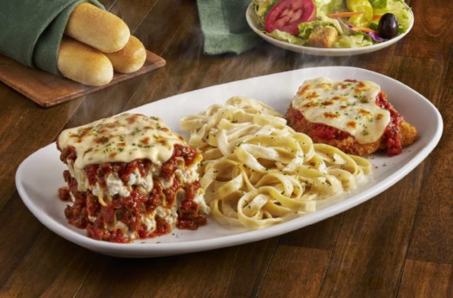You can’t go wrong with the Tour of Italy, especially when you can’t decide on one item. “The Tour of Italy makes sense if you’re in the mood for classic Olive Garden food,” says Buchanan. “You get lasagna, chicken Parmigiana and fettuccine alfredo together, which covers most of what the restaurant is known for.”