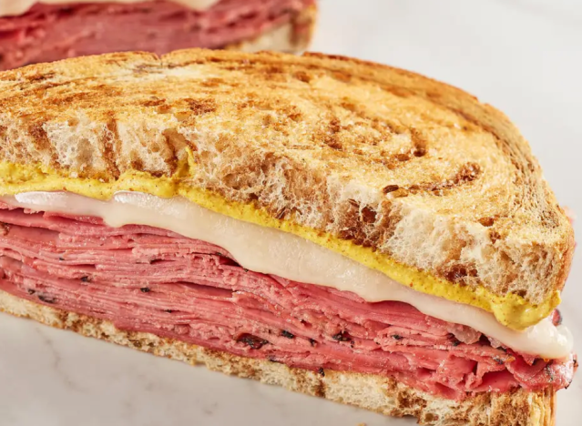 For an unforgettable pastrami, the New Yorker is it! McAlister’s Deli has earned a solid reputation for its pastrami. The New Yorker is layers of freshly sliced pastrami and corned beef with Swiss cheese and spicy brown mustard on marbled rye. “A classic combination that lets the meat take center stage without being overwhelmed by heavy sauces or unnecessary toppings,” says Dennis Littley, Chef and Culinary Expert at Ask Chef Dennis. “Because the meat is sliced to order in most locations, the sandwich retains a juicy, tender texture rather than drying out. That detail alone makes a huge difference in every bite.” He adds, “What stands out is the balance between all of the ingredients. The rye bread has enough structure to support generous layers of meat without becoming soggy, and the spicy brown mustard adds acidity and subtle heat. The sauce cuts through the richness of the pastrami and corned beef.”