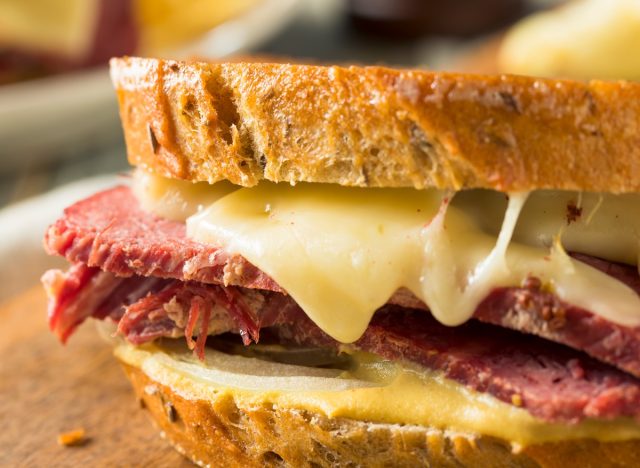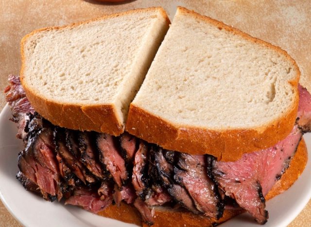 McAlister’s Deli is another place that’s highly recommended by chefs and with 571 locations across the country, it’s much more accessible. ‘McAlister’s Deli has earned a solid reputation for its pastrami sandwiches because the chain takes care of its food quality and amazing service,” says Dennis Littley, Chef and Culinary Expert at Ask Chef Dennis. He explains, “Their most popular version, often known as the “New Yorker,” layers freshly sliced pastrami and corned beef with Swiss cheese and spicy brown mustard on marbled rye. A classic combination that lets the meat take center stage without being overwhelmed by heavy sauces or unnecessary toppings. Because the meat is sliced to order in most locations, the sandwich retains a juicy, tender texture rather than drying out. That detail alone makes a huge difference in every bite.” Chef Dennis adds, “What stands out is the balance between all of the ingredients. The rye bread has enough structure to support generous layers of meat without becoming soggy, and the spicy brown mustard adds acidity and subtle heat. The sauce cuts through the richness of the pastrami and corned beef.”