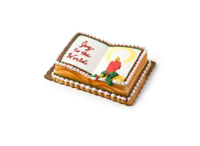 Publix’s Christmas Book Cake ($36.99) is a seasonal treasure. “We’ve written the book on Christmas cakes, and it’s delightful from cover to cover. With a classic glowing red candle and a warm message, this unique cake is a perfect choice for the holiday,” the store says.