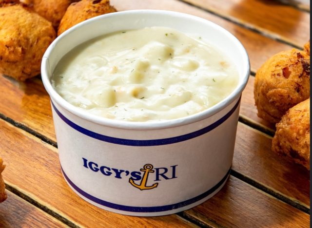 The Bowl of Chowder at Iggy’s Doughboys & Chowder House in Warwick, RI, is raved about by diners. “The best New England chowder we’ve had so far. Pick up your order, find a bench and enjoy your meal by the beach watching the sunset. A great experience!” one shared.