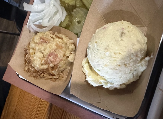 Eunice brings a Louisiana flavor to Texas with its Cajun-Creole style menu. While it’s not offered as a side it’s used as a topping for certain dishes, which elevates the plate to a different level. According to Chef Corrie, it’s a “creamy, well-balanced Louisiana-inspired potato salad with a crispy cracklin’ topping for extra texture.” He explains, “It has classic Cajun flavors like mayo, Creole mustard, hard-boiled eggs, and fresh vegetables. This makes it a unique dish that goes well with gumbo or can be eaten on its own.”