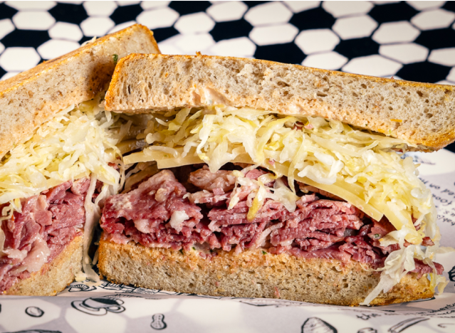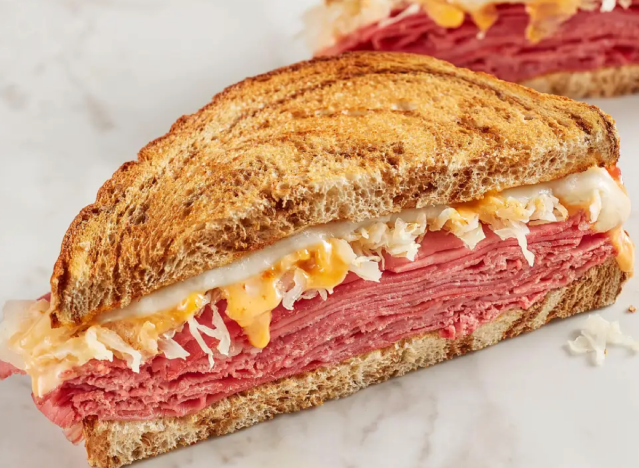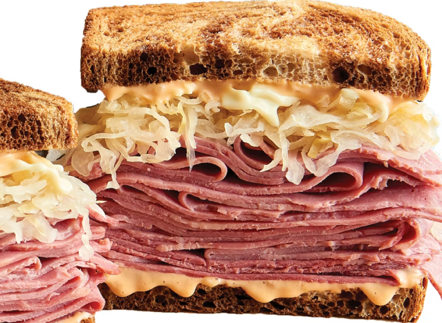 St. Patrick’s Day is right around the corner (Tuesday, March 17), and people across the United States are getting ready to celebrate with festive parades, plenty of green, and traditional foods like corned beef–the star ingredient in one of the most beloved deli classics: the Reuben sandwich. Stacked with tender corned beef, tangy sauerkraut, Swiss cheese, and creamy dressing on grilled rye bread, the Reuben is a hearty, satisfying choice for anyone looking to celebrate the holiday with a flavorful bite. Corned beef is the thing to eat on St. Patrick’s Day because, when many immigrants from Ireland arrived in the 19th century, they found it cheaper and more readily available than the pork or bacon dishes they typically ate back home, so it became a popular substitute for their traditional meals. Over time, corned beef paired with cabbage became a symbolic holiday dish in the U.S., especially in cities with large Irish immigrant communities. While it’s not hard to find a Reuben, especially on St. Patrick’s Day, some chains do it better. Here are the top seven places to go, according to chefs.