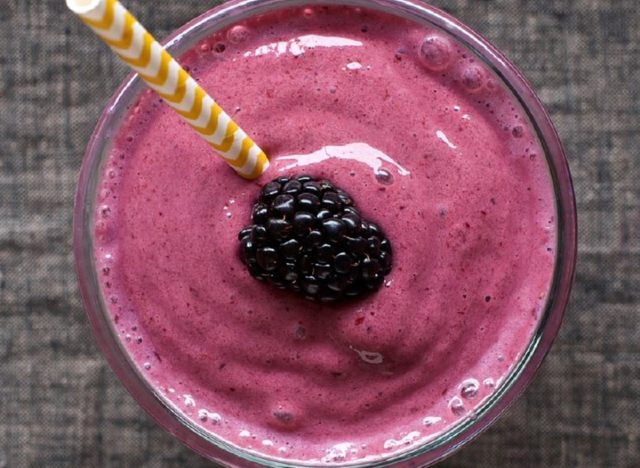 This low-calorie smoothie comes in at about 200 calories and packs an ultra-satisfying combination of 18 grams of protein and 6 grams of fiber. According to The Nutrition Twins, this macronutrient combination helps to keep blood sugar levels stable and prevent energy dips that lead to sugar cravings.