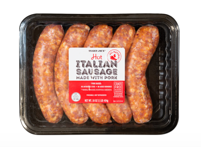 Trader Joe’s Hot Italian Sausage made with Pork is made with real pork raised with no antibiotics ever and with no added hormones. “If you haven’t tried their hot Italian sausage it’s one of the tastiest and spiciest I’ve had. Enough heat to legit raise the heat level of a whole dish,” one shopper said.