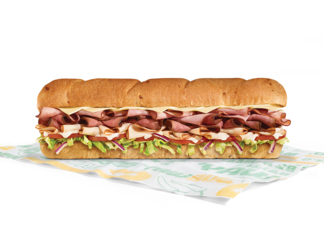 The fan-favorite Subway Club is made with oven-roasted turkey, ham, roast beef, American cheese, lettuce, tomatoes, onions and mayo, served on freshly baked Multigrain bread. “The club sandwich (ham, roast beef, turkey) on honey oat bread.. any cheese, lettuce, tomato onion, mayo, and a bunch of red wine vinegar,” one fan said. “Sub club is my go-to,” another said.