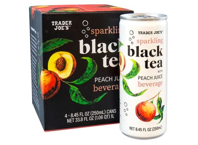 In the age of non-alcoholic beverages, I really appreciate a fun, spritzy drink I can sip on at a social function without feeling the need to imbibe. Trader Joe’s has been releasing some beautifully packaged sparkling tea drinks over the past few years. Of course, I’ve tried them all, and one of my go-to’s is the Black Tea with Peach Juice.