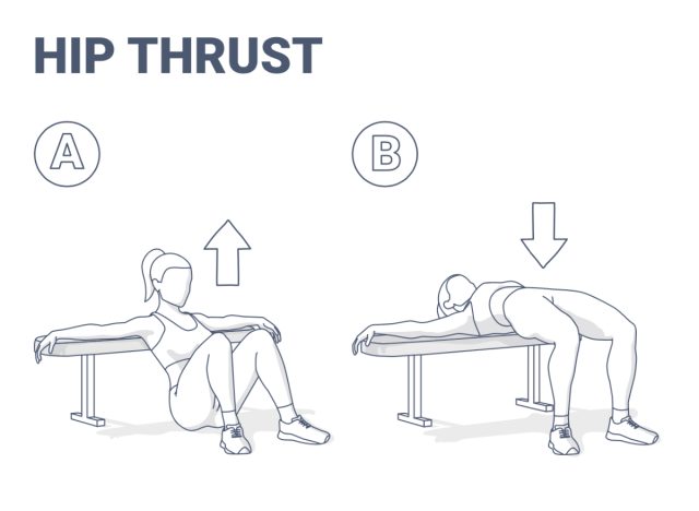 Hip thrusts are particularly effective for working the glutes and hamstrings. They also involve the lower abs and core. The engagement of these muscles supports the reduction of belly fat.