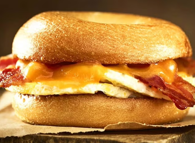 Over at Einstein Bros. Bagels, you can get filling bagels, bagel sandwiches, and other breakfast options for under $8. There are several egg sandwiches under $8, including a bacon-and-cheddar egg sandwich.