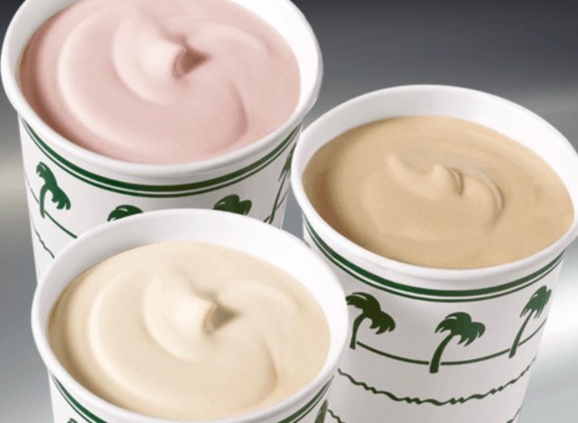 In-N-Out shakes are legendary for their simplicity and tastiness. The chain serves three flavors–chocolate, vanilla and strawberry, but ultra fans know they can order one that blends all three known as the Neopolitan and people are obsessed. One Redditor wrote, “The Neopolitan milkshake is hands down the most delicious thing $3.17 can buy.” A second shared, “The best shake on the planet,” while another person wrote, “The most underrated dessert. I only get chocolate vanilla though.”