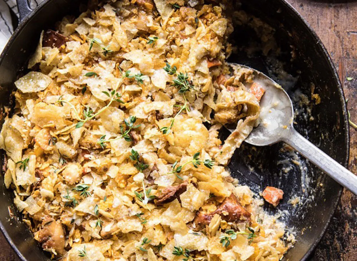 Canned chicken works beautifully in casseroles because it becomes a seamless part of a larger whole. This indulgent version also features noodles and a crispy potato chip topping.