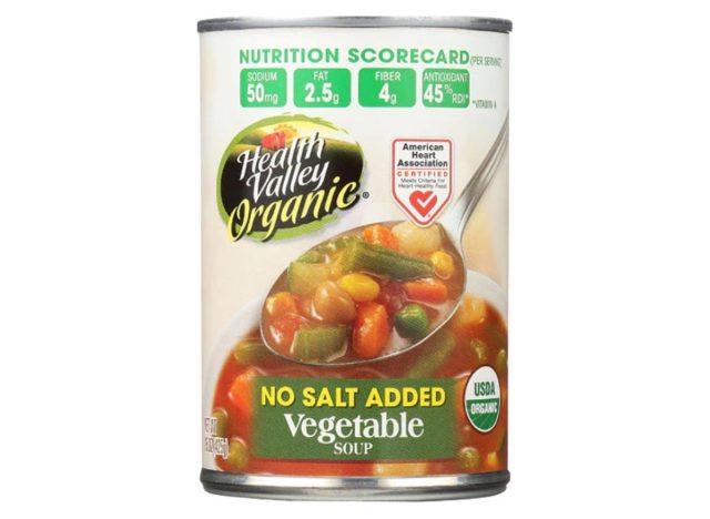 Flavored with herbs and spices instead of salt, this soup is jam-packed with quality ingredients that you would likely include in a homemade veggie soup recipe, like organic potatoes, organic carrots, and organic celery. No questionable ingredients and quality ingredients make this soup a must-have. One can of this soup only contains 45 mg of sodium, vs. a whopping 890 mg of sodium found in a serving of Campbell’s Vegetable Soup.