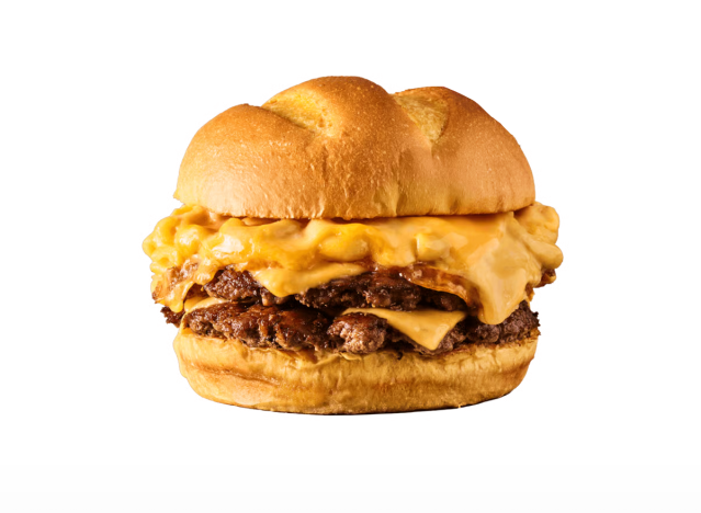 The Double Cheesy Mac Smash at Smashburger is a new 1180 calorie burger. Yes, this menu item contains exactly what the name suggests: Two Certified Angus Beef burgers, American cheese, and smashed and griddled creamy mac & cheese on a butter-toasted bun. They put mac and cheese into a burger! Amazing.
