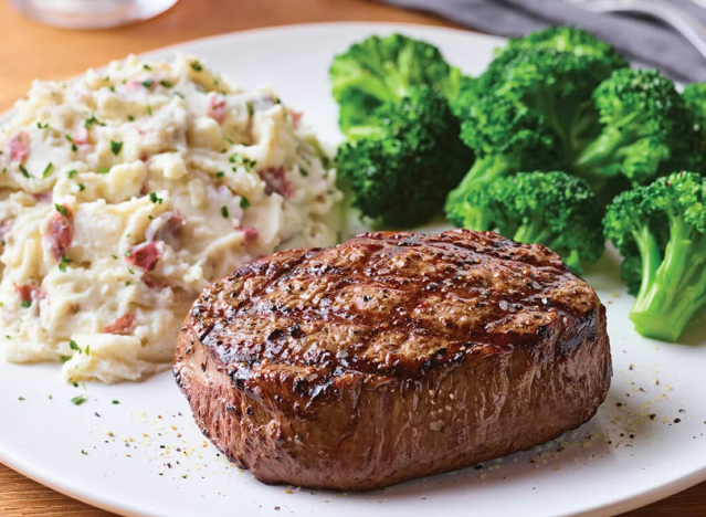 Applebee’s diners can enjoy the 8 oz Top Sirloin for $15.99, a lightly seasoned steak cooked to perfection and served hot off the grill. This cut is served with garlic mashed potatoes and seasoned broccoli, plus the option to add sides like French Fries. It’s Applebee’s, you know you’re ordering boneless wings too.
