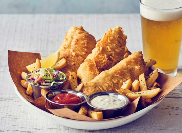 One of the most traditional dishes from the United Kingdom is fish and chips. While incredibly simple, it’s also simply delicious, usually consisting of fried fish strips paired with French fries. The only way to make a good meal even better? By adding coleslaw to the equation. The refreshing side, usually a concoction of shredded cabbage, creamy mayo, and tangy vinegar, balances out the flavor in the best way. Where can you get the trio? Here are 6 chain restaurants serving the best fish and chips with coleslaw.