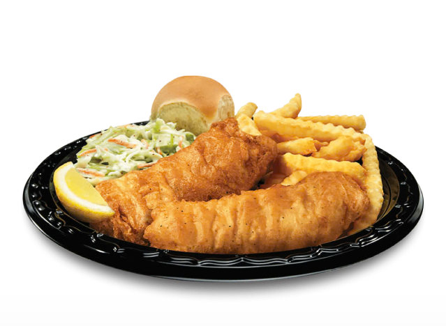 The Fish Fry Platter at Bob Evans features three hand-cut Alaska cod fillets with a light, flaky, pub-style batter, served with tartar sauce, a lemon wedge, and sides, usually French fries and coleslaw. According to diners, the slaw is a creamy, tangy concoction of shredded cabbage, carrots, and a hint of green kale bathed in a sweet-and-sour dressing containing mayo, milk, sugar, vinegar, and a dash of Tabasco.