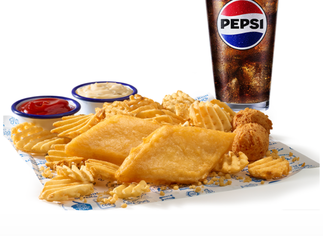 Cracker Barrel’s Friday Fish Fry is legendary. You get four hand-battered and fried country-style cod fish fillets with tartar sauce, fresh lemon, and two sides. One of the most popular is the southern-style slaw, a mix of green cabbage, red cabbage, and carrots tossed in a coleslaw dressing