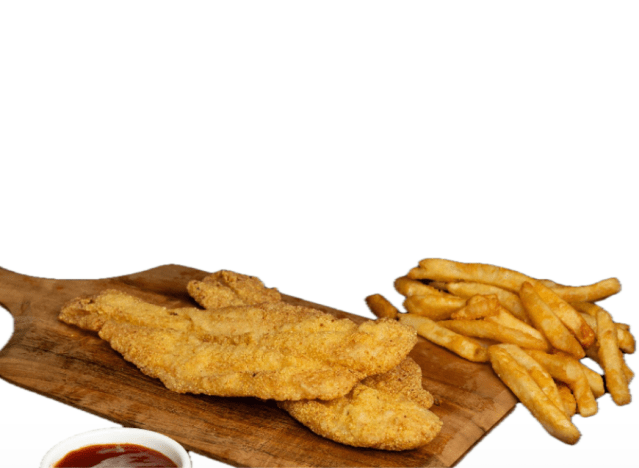 Eat My Catfish has several delicious options on the menu: The Catfish Dinner is served with 2 regular sides and hushpuppies. There’s also a Chicken & Catfish Combo (2 pieces U.S. farm-raised catfish, 2 pieces fresh Arkansas chicken tenders, served with 2 regular sides and hushpuppies). Catfish is also on the lunch specials menu.