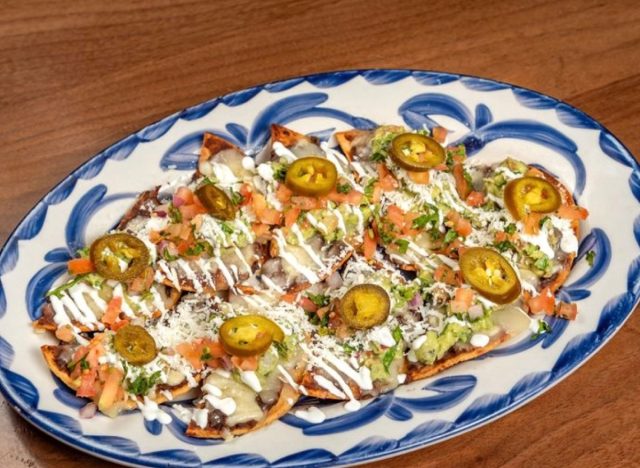 Themed restaurants were all the rage in the ’90s, and Hard Rock Cafe was one of the biggest names in the game. While the brand may not be as ubiquitous as it once was, it still delivers on its signature mix of music, memorabilia, and crowd-pleasing comfort food. According to Chef Corrie, its Legendary Nachos are a standout. “They’re served on a large metal tray with evenly melted cheese and tender white meat chicken with the chips staying crunchy throughout, and there are no burned spots,” he explains. “The creaminess of the cheese and the tenderness of the chicken are what make this dish stand out. The tomatoes are about what you’d expect depending on the season, but overall it’s a reliable, satisfying plate of nachos.”