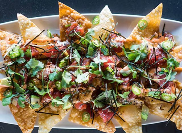 Nachos are one of the greatest things to eat on the planet. They’re crispy, cheesy, customizable, and fun to share. But nachos can go very wrong if they’re not done right. They can quickly become a soggy mess if they’re not layered properly with high-quality chips and good toppings. You can find nachos easily, but to find the best, Eat This, Not That! asked Corrie Duffy, chef and food blogger at Corrie Cooks, to share his top five go-to chains.