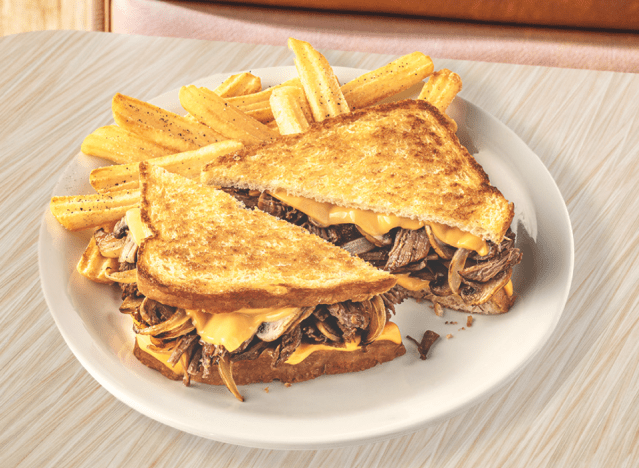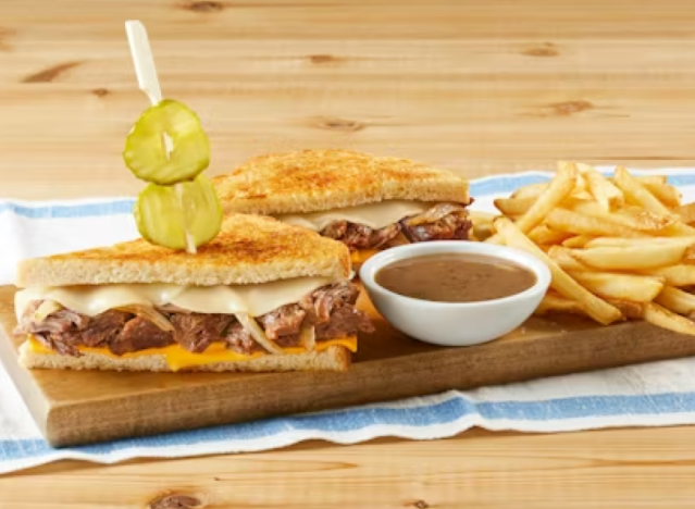 Over at Bob Evans, the Double Cheese Pot Roast Dip is a hit with diners. “Our signature slow-roasted pot roast, caramelized onions, melted American cheese and real provolone cheese on grilled sourdough bread served with homestyle beef gravy for dipping,” the chain writes. “Bob Evans serves a hot roast beef samich with a cup of beef gravy on the side that is really good also,” a Facebooker writes.