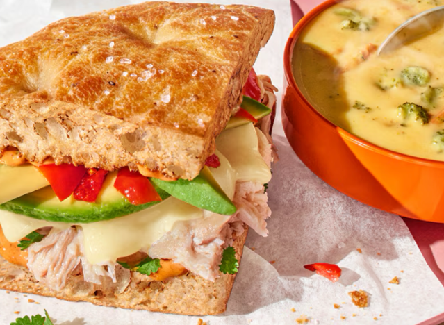 Over at Potbelly, you can pair one of the chains toasty melts with a cup of soup, including its signature Broccoli Cheddar or Chicken Pot Pie, as part of the Pick Your Pair combo. It comes with a “skinny” sandwich and any cup of soup, chili, or mac & cheese.