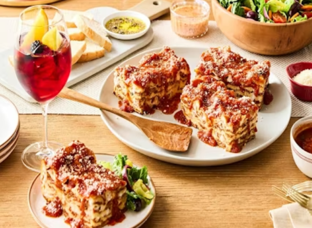 If you are Italian or have spent a lot of time with Italian families, you are well aware that lasagna is the ultimate family-feeding, crowd-pleasing dinner. The casserole-style pasta dish, which is generally made with layers of noodles, cheese, sauce, veggies, and sometimes meat, is generally cooked in a large pan and cut into pieces with enough food to serve a large group. If you are craving lasagna but don’t feel like cooking it yourself, there are a handful of restaurants that offer family-style lasagna dinners that won’t break the bank. Here are 5 chain restaurants with the best family-style lasagna that feeds four for as low as $40.