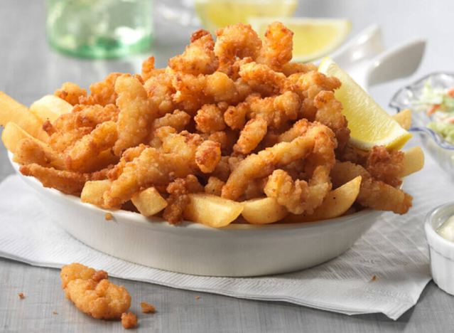 If you have ever been to New England, you are probably well aware of the deliciousness of clam strips and tartar sauce. If not, and you are struggling to understand the difference between fried clams and clam strips, one Redditor explains it. “When you get fried clams there are generally two options. Strips or whole belly. Strips are simply the clam with the belly removed. A whole belly clams refers to an entire clam that has been breaded and fried,” they wrote in a post about New England clam strips. “I personally prefer the whole belly because it has a much richer flavor but some people are opposed to the texture and opt for the strips.” Aside from a seaside spot on the East Coast, where can you enjoy the fried treat? Here are 6 chain restaurants serving the best fried clam strips and tartar sauce.