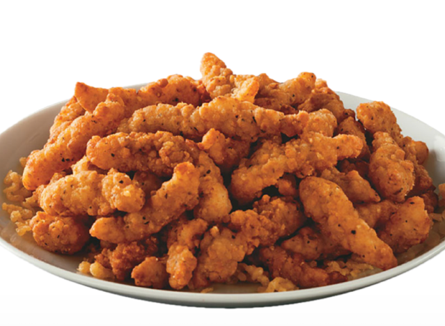 Long John Silver’s Clam Strips are crispy, bite-sized perfection and are made even more delicious when paired with the chain’s tartar sauce. “Indulge in the delightful crunch of our Clam Strips – a snack-size serving of crispy, breaded clams. Savor the bite-sized goodness as each clam strip offers a perfect blend of crispy coating and tender clam flavor,” the restaurant says.