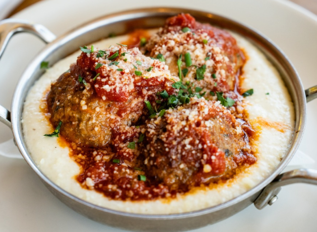 Maggiano’s Little Italy meatballs are house-made, tender, and served in hearty, saucy portions. The chain recently revamped its meatball into a more premium option. “Our Spaghetti and Wagyu Beef Meatball may just be a secret menu item, but it’s no secret how rich and flavorful our new Wagyu Beef is,” the restaurant shared on Facebook.